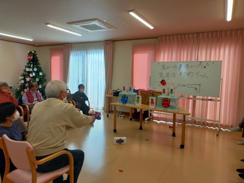 デイサービスでも豆まきを…といいたいところですが、