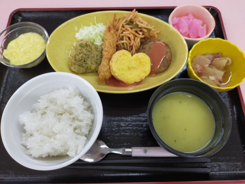 (エビフライ、ハートオムレツ、ミニハンバーグ、三角チーズポテトフライ、ナポリタン)