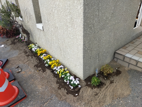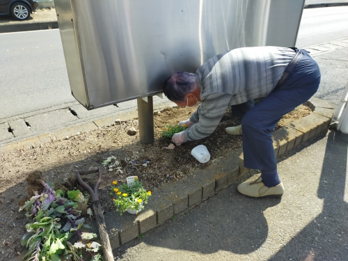 もう一か所、道路側の看板の裏の植え込みにも植えてもらいました。