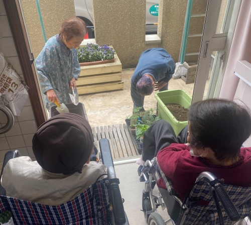 やや殺風景だったデイケアのベランダが