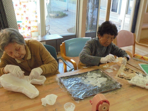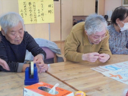 色塗りや張り合わせなど個々に役割を持っていただき完成を目指して頑張っ下さっています。
